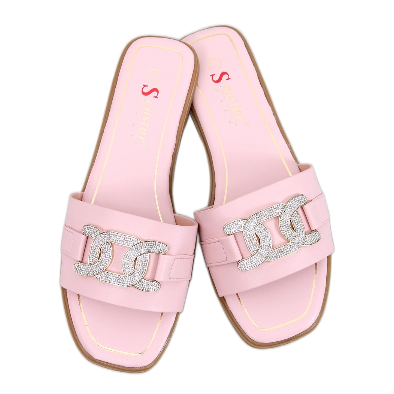 Discover summer elegance with sandals flip flops with Mille Pink zircons from INELLO! These women's flat soles combine comfort and fashionable design, perfectly fitting into the latest trends. The characteristic square cut and shiny zircon applications give them a unique charm, making you feel stylish and feminine in every situation.