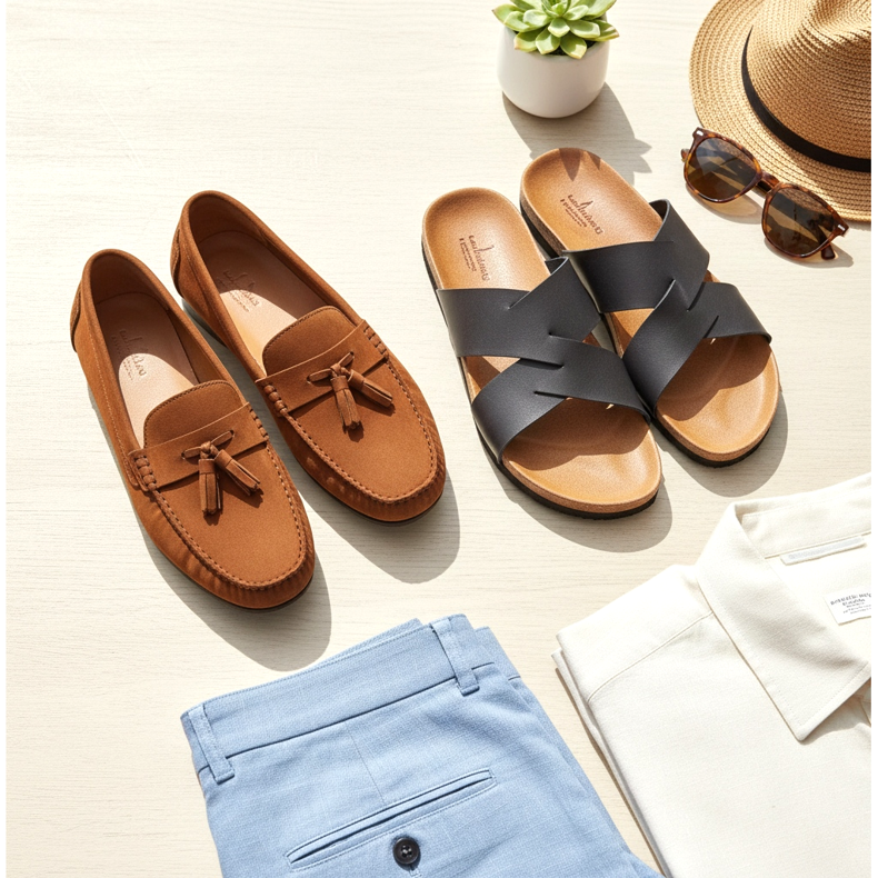 Pair 4: Loafers or loafers and Pair 5: Leather sandals or flip-flops
