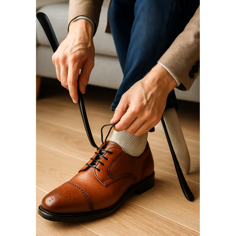 - Shoehorn — minimum 2 items (home + work/handbag); model with a long handle for comfort.