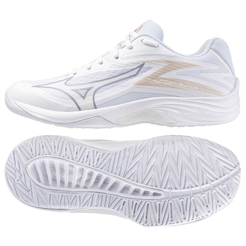 Mizuno Thunder Blade Z stand out not only for their functionality, but also for their aesthetics. Their unique white color scheme and manufacturer's logo add a sporty character. These are the perfect shoes for every female athlete who wants to combine comfort with a modern look.