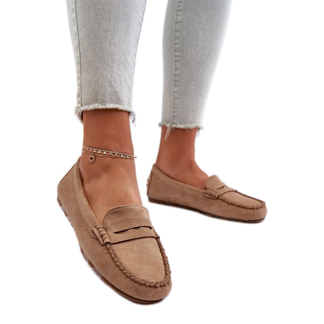 Discover moccasins model 24pb02-7673 in Dark Beige color-perfect footwear for modern women! These elegant women's loafers are made of high quality eco suede, which provides them with both style and durability. Classic design and a subtle front strap give them charm, making them perfect for many different styles.