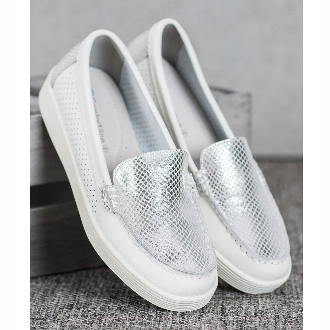 VINCEZA platform loafers in white and grey are the perfect choice for women who value elegance and comfort. These classic, delicate shoes are made of high-quality natural leather, which ensures their durability and stylish look. An interesting accent is the silver detail placed on the top of the shoe, which gives them a modern character.