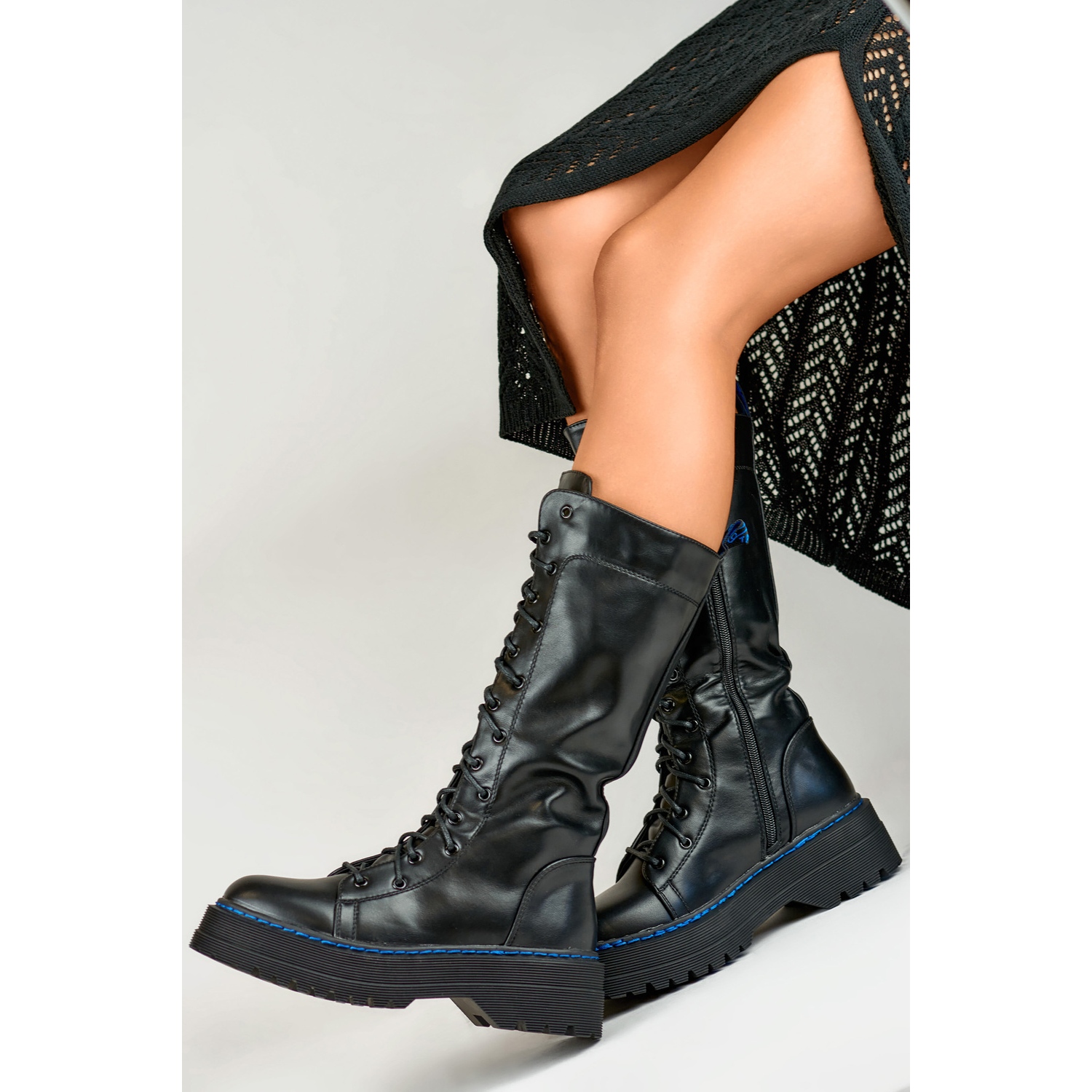 Boots are made of high quality ecological leather, which makes them not only environmentally friendly, but also very durable. The 30 cm high upper reaches half the calf, offering excellent support and stability. In addition, special lacing and a zipper along the entire length of the upper allow easy putting on and taking off the footwear.