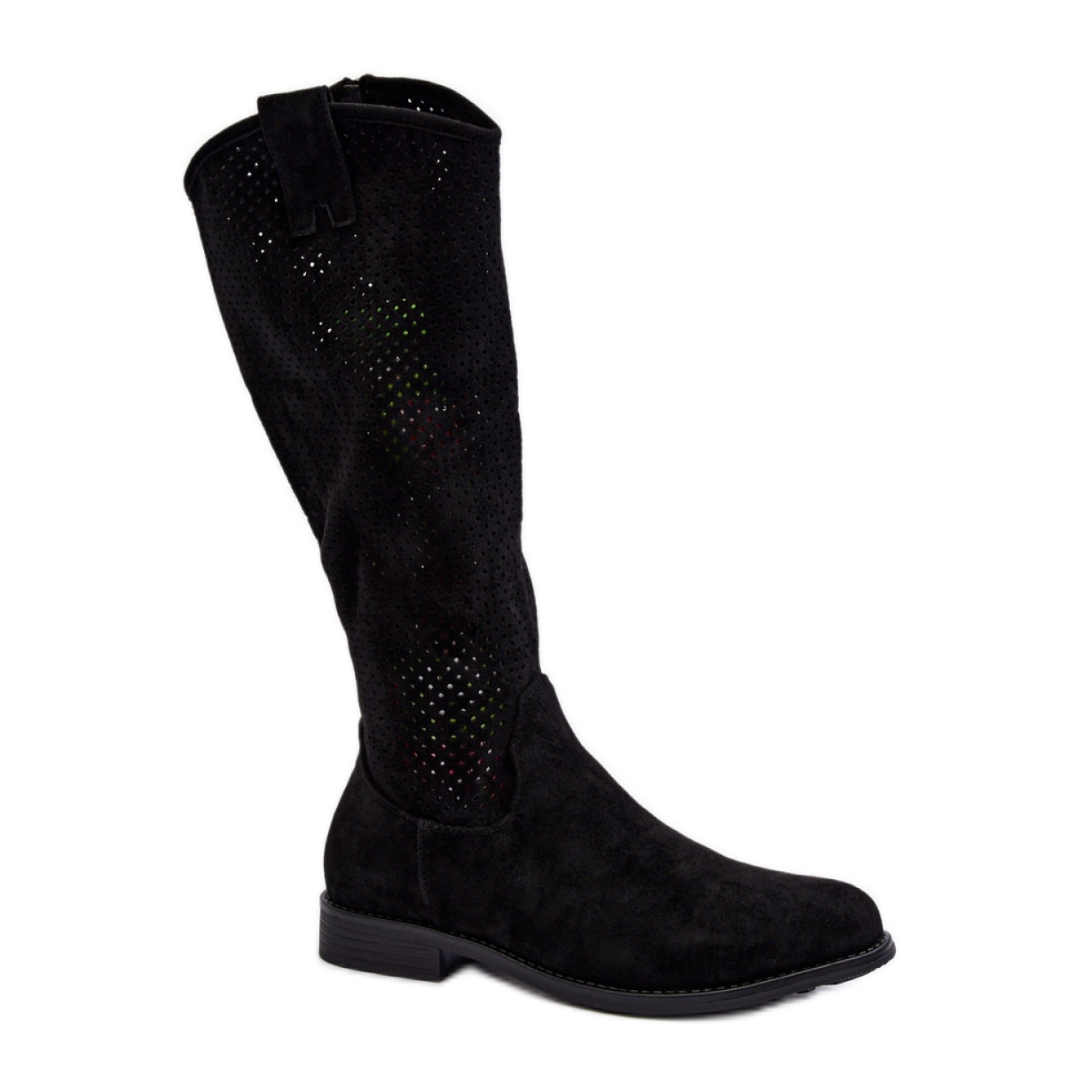 Discover the unique style and comfort thanks to the Cossacks Model S. Barski HY66-139 from the Step in Style brand. These elegant, black boots with an openwork upper to the knee are the perfect choice for any occasion. Made of high quality eco suede, they look extremely impressive, and their minimalist design makes them perfectly fit every autumn-winter stylization.