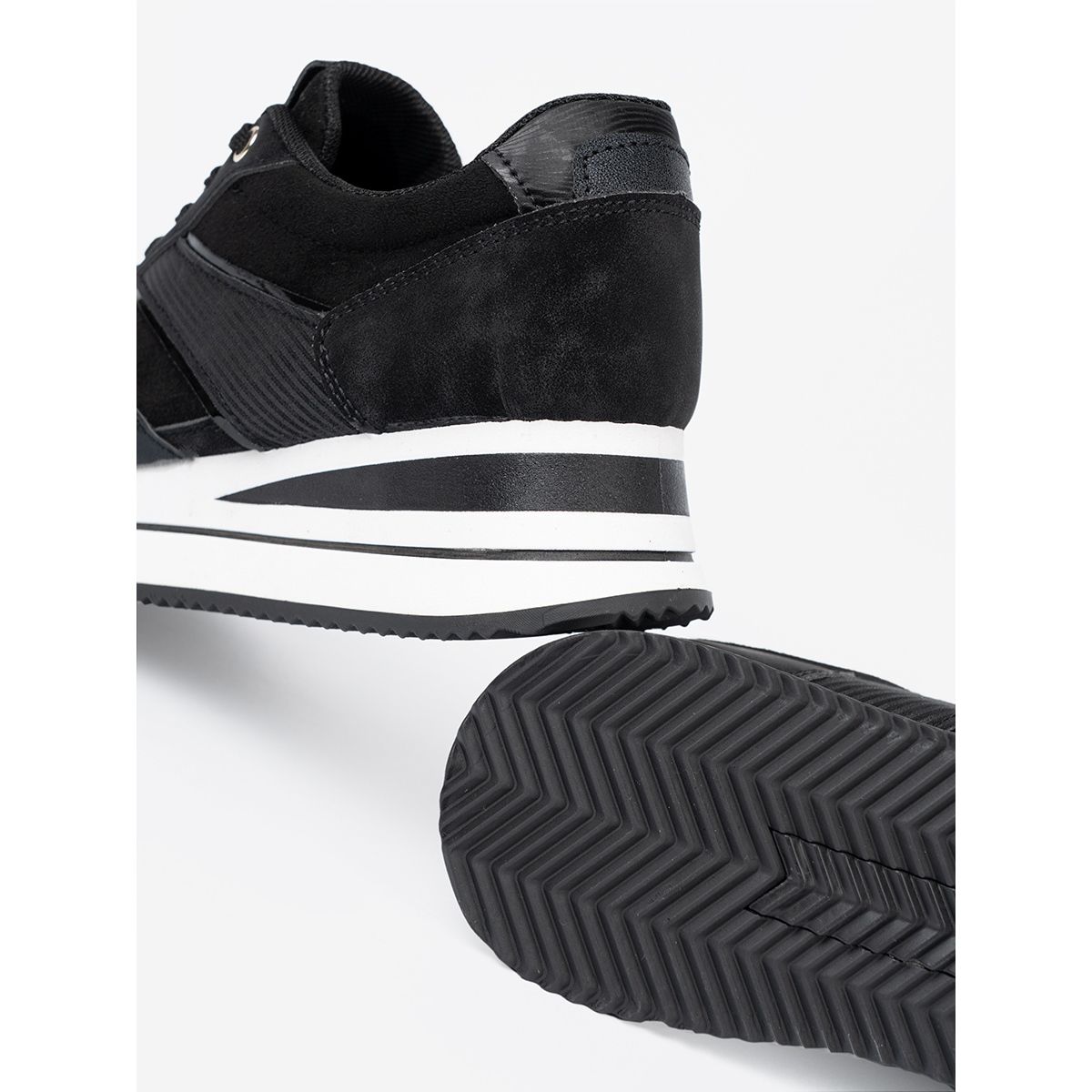 Details: Shelvt Modern black sneakers with shiny inserts