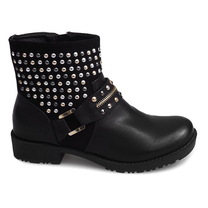 The 1636 studded motor boots in black are a stylish and comfortable choice for every woman who values fashion and comfort. These unique shoes, decorated with silver rhinestones and studs, will bring a bit of rock vibe to your wardrobe. Thanks to the zipper and buckle, putting on and taking off the boots is extremely easy.