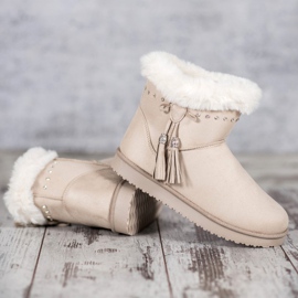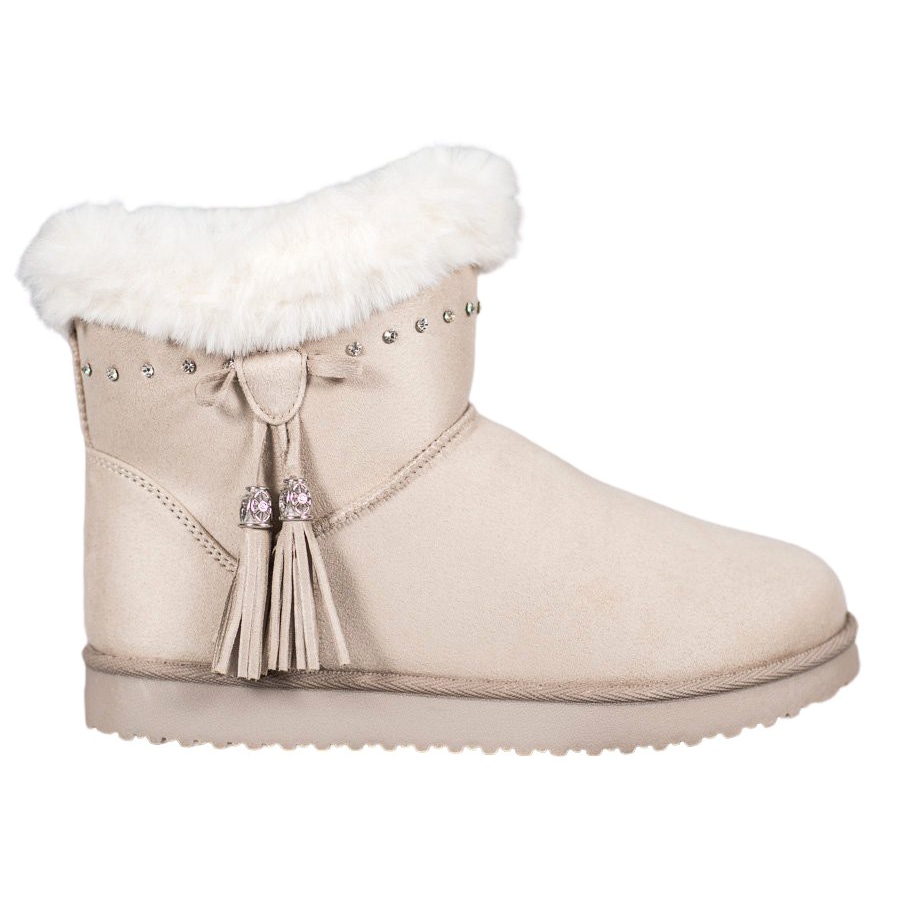 Warm faux fur means you can enjoy pleasant warmth, even on colder days. A suitably profiled, synthetic sole provides stability and comfort, and its tread makes you gain self-confidence on various surfaces. Mukluki decorated with crystals and fringes are the perfect choice for women who want to emphasize their style in everyday outfits.