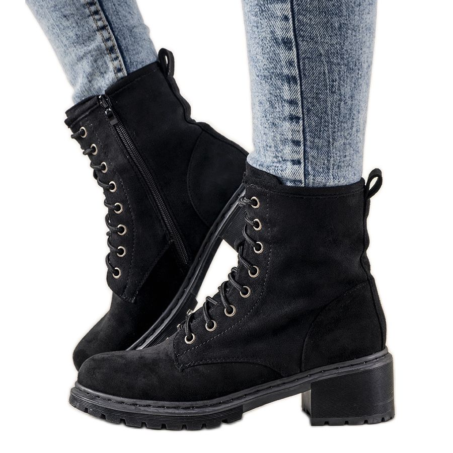 The elegant and universal Must have boots are made of suede ecological leather in timeless black. The design combines a fashionable, trapper sole cut with the convenience of everyday use - it is an ideal model for the autumn and winter season, which you can easily blend in with many styles.