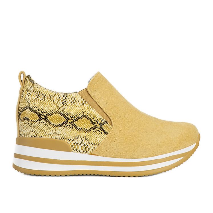 The sneakers are made of suede eco-leather in a juicy yellow shade, which is a hit of the upcoming season. An additional accent in the form of a snakeskin motif insert makes this model stand out from the others.