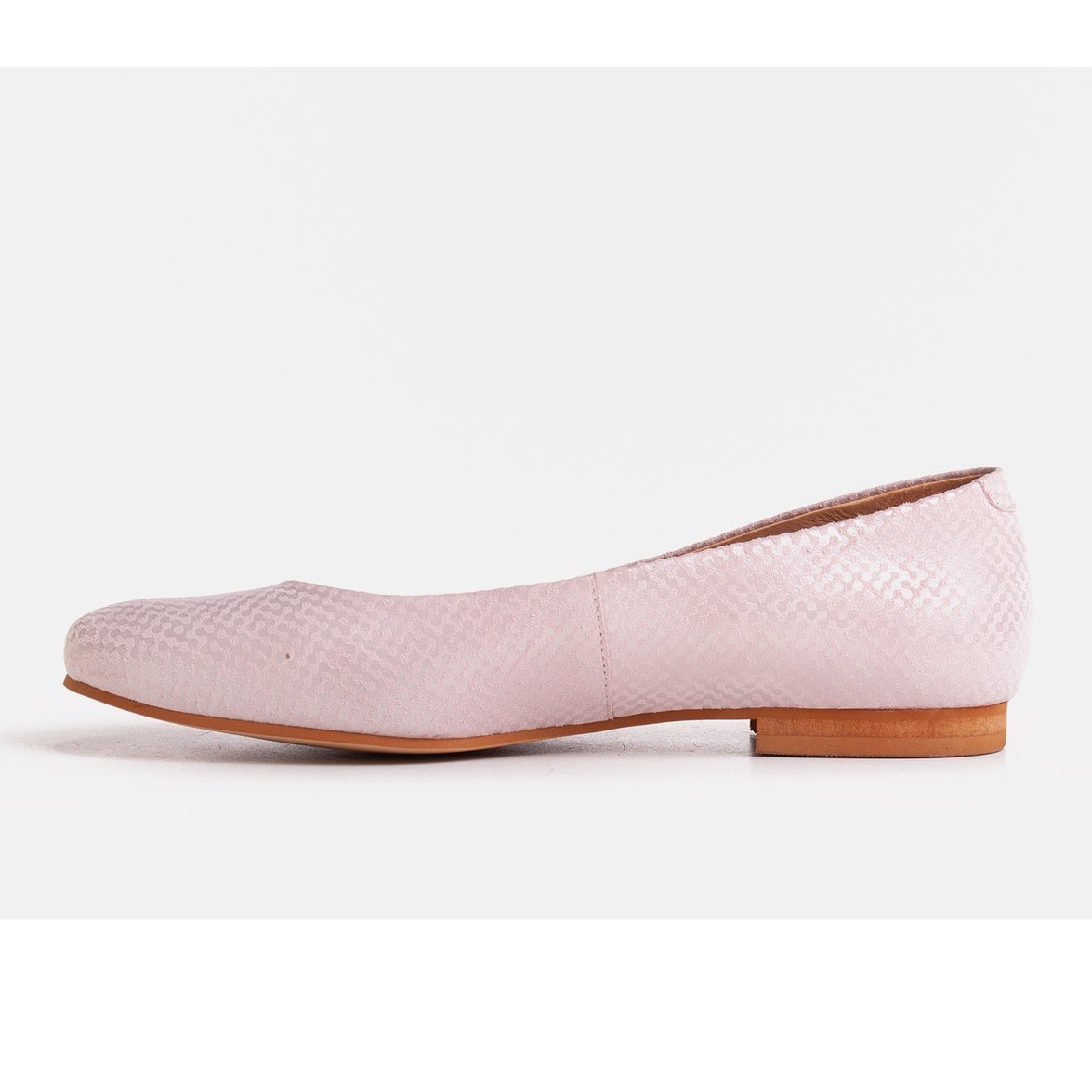 The whole thing looks extremely tasteful thanks to the high-quality natural suede used to finish the outer part of the shoe. The delicate pink color combined with a silver-plated shade gives the ballerinas a modern character and can also make them an attractive accent in any styling.