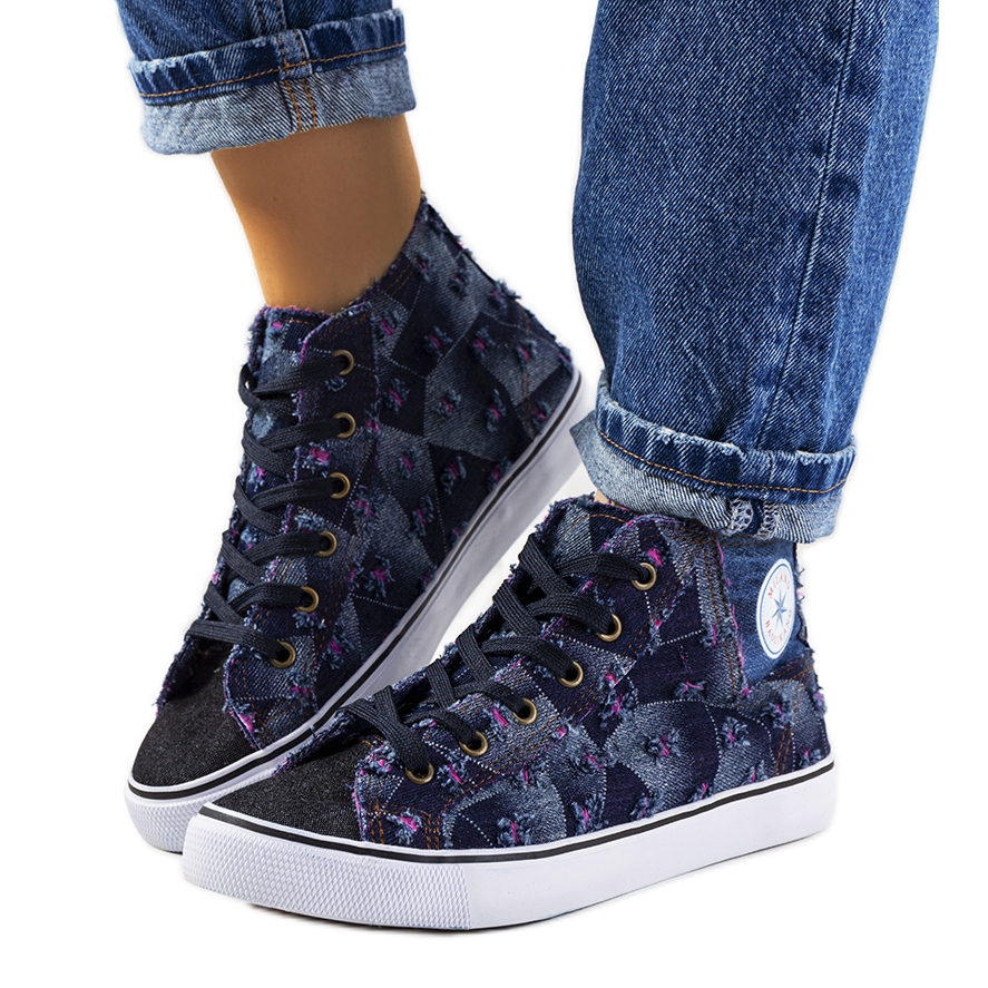 The Lewis navy blue ankle-high sneakers are a great choice for women who value originality and fashionable design. The upper is made of high-quality material resembling jeans, with delicate abrasions in a subtle shade of pink, giving the shoes a unique character. This model goes well with a variety of styles, from casual to slightly more elegant, allowing you to freely express yourself.