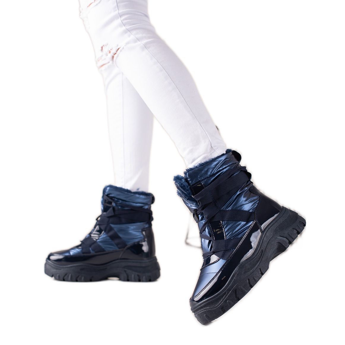 Discover the navy blue, shiny snow boots from the renowned manufacturer TRENDI, which are a perfect combination of comfort and style. Thanks to their casual design, these elegant women's shoes are perfect for everyday wear, providing not only a fashionable look, but also comfort during winter walks.