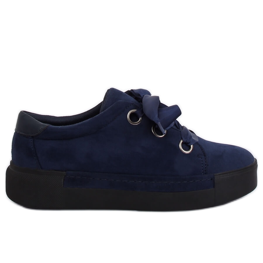 Discover exceptional style and comfort with the navy blue 1018 Blue women's sneakers! Made of ecological suede leather, these fashionable shoes will certainly become an inseparable element of your everyday wardrobe. Their modern design with a high sole and elegant ribbon lacing adds originality, and the subdued navy color makes them perfectly match a variety of styles.