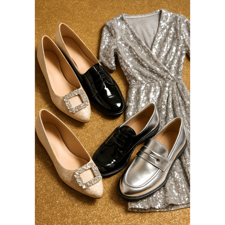 Not all of us love high heels, especially when we plan to dance all night long. Check out what flat shoes will be a hit on New Year's Eve 2025/2026. Jeweled ballet flats, patent oxfords and metallic loafers - these are our picks for a stylish and comfortable start to the New Year!