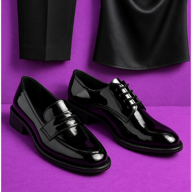 If your style is more minimalist or masculine, choose patent loafers or oxfords. This is a great alternative to high heels, especially if you plan to spend New Year's Eve at a house party or in a club with a looser dress code. Patent leather reflects the light from disco balls just as well as sequins! Pair them with cigarette pants and a silk top for a Parisian bohemian look.
