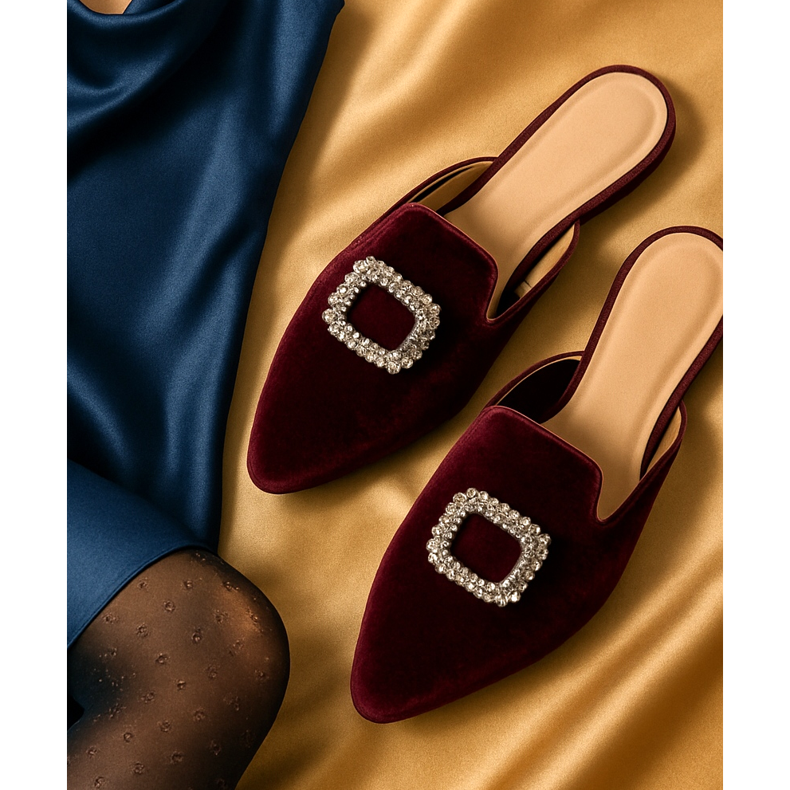 For the brave ones, we offer velvet or satin mules with a jewelry buckle. Although they may seem "slippery", when combined with a long slip dress they create an extremely sophisticated set. Just remember to take care of your tights - this year, tights with patterns or glitter threads are fashionable, which will also warm your feet on a cold night.