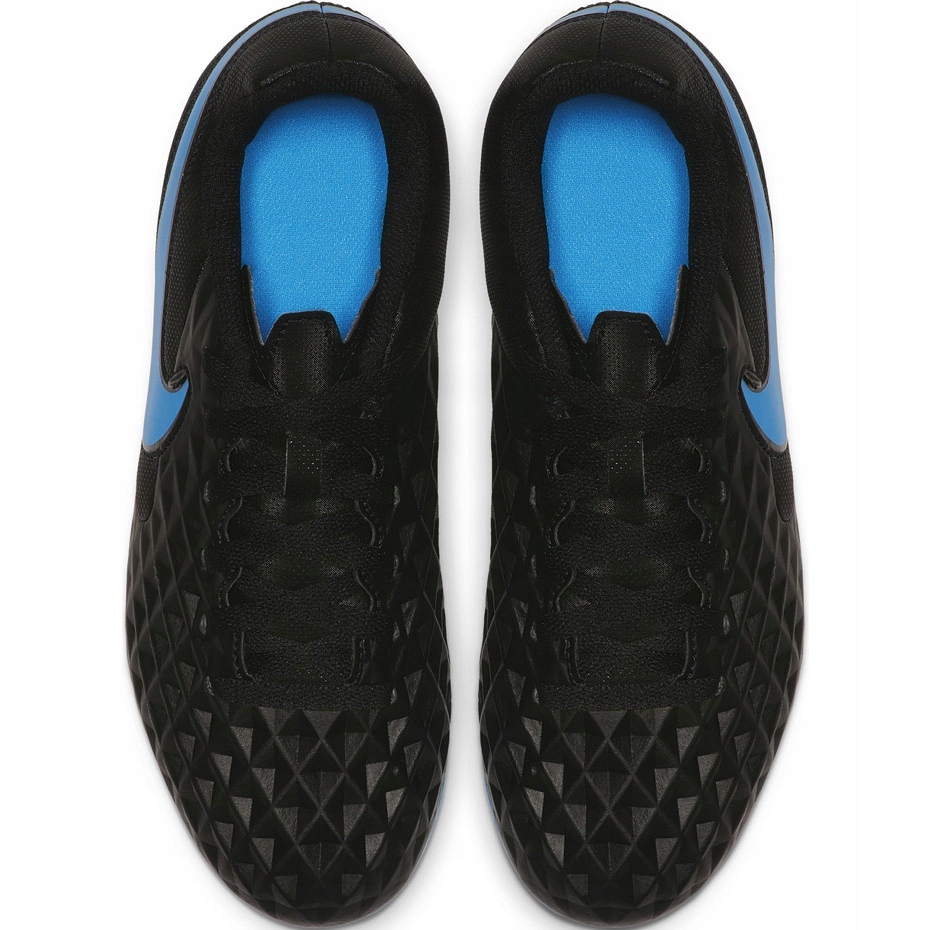 Nike Tiempo Legend 8 Club FG/Mg Junior AT5881 004 football shoes - style and comfort for young players. The black, textured synthetic upper provides some contact with the ball, and the lightweight design does not burden the foot during the game. The model is intended for natural and artificial grassy surfaces (fg/mg) - a special sole with plastic traffic jams ensures good adhesion and stability during fast turns and sprints. Perfect for beginner and amateur players who need durable and comfortable traffic jams.