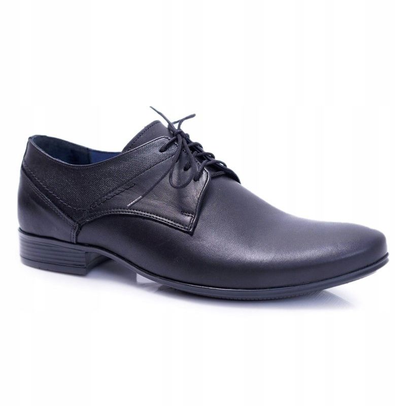 We present the Nikopol 1622 men's formal shoes in classic black, which are a great choice for every elegant man. Made entirely of natural grain leather, these shoes combine elegance with the highest quality of workmanship, which ensures comfort and convenience of use throughout the day.