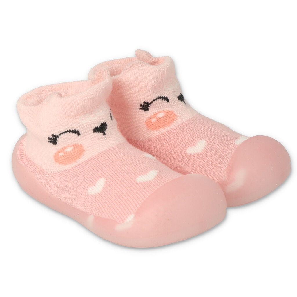 These slippers consist of an elastic sock that perfectly envelops the foot and a non-slip sole that provides stability and safety. Their well-thought-out design means that they do not burden the child's foot or put pressure on it, which is extremely important at such an early stage of development. The shape of the shoe guarantees that they do not slip during the toddler's movements, which ensures comfort throughout the time of wearing.