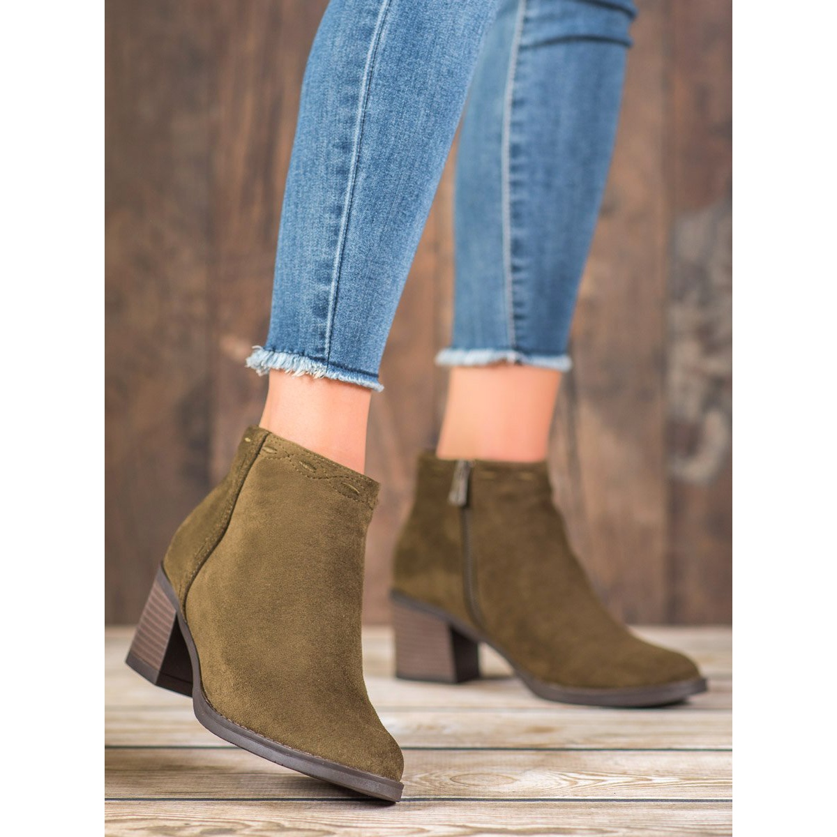 Introducing elegant and fashionable ankle boots with a block heel from the Kylie brand, which will certainly become an inseparable element of your wardrobe. In olive color, these women's suede ankle boots combine comfort and style, perfectly matching the trends of the autumn/winter season.