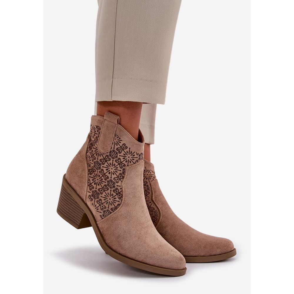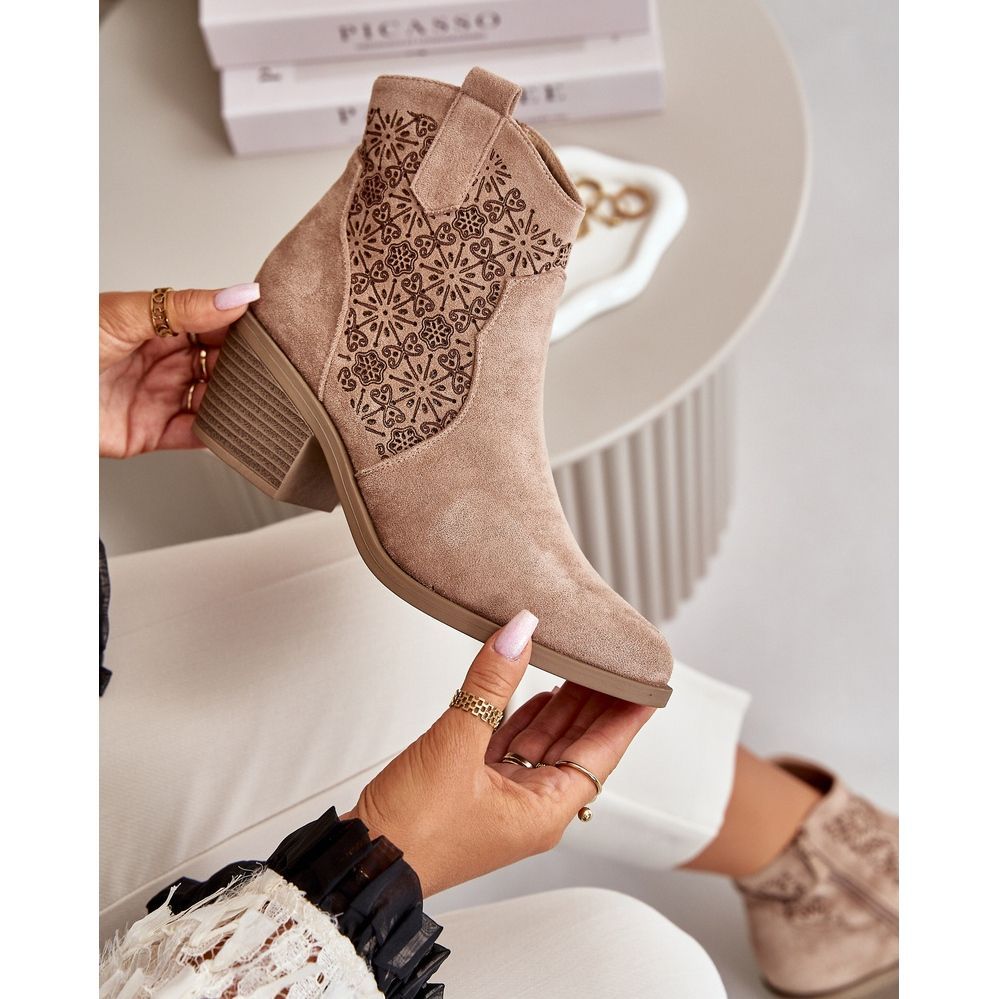 Details: Openwork Ankle Boots Cowboy Boots With Zipper Eco Suede Beige S.Barski HY42-944