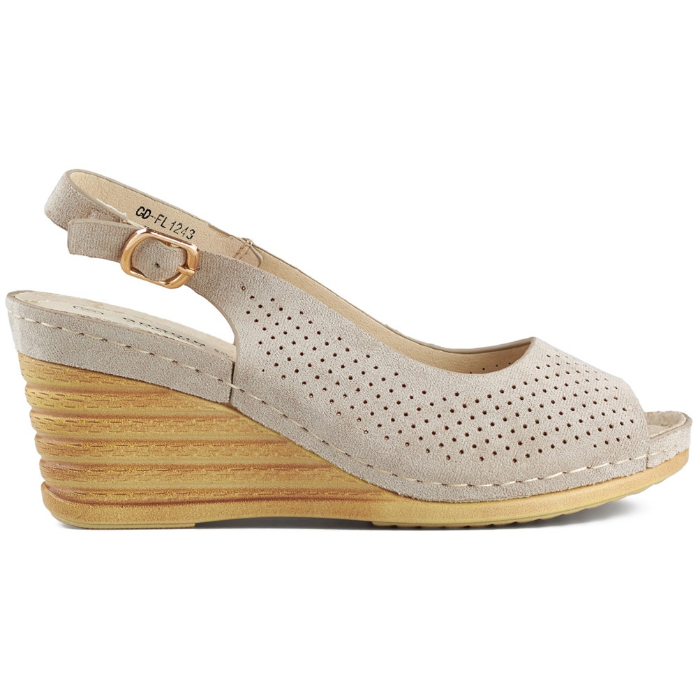 Discover elegance and comfort thanks to beige sandals on Goodin wedge, which perfectly match the latest fashion trends. Made of high quality ecological leather, they not only provide aesthetic appearance, but also the durability and comfort of wearing. The classic cut with an open toe and an openwork finish makes them an ideal choice for summer days, adding femininity of any stylization.