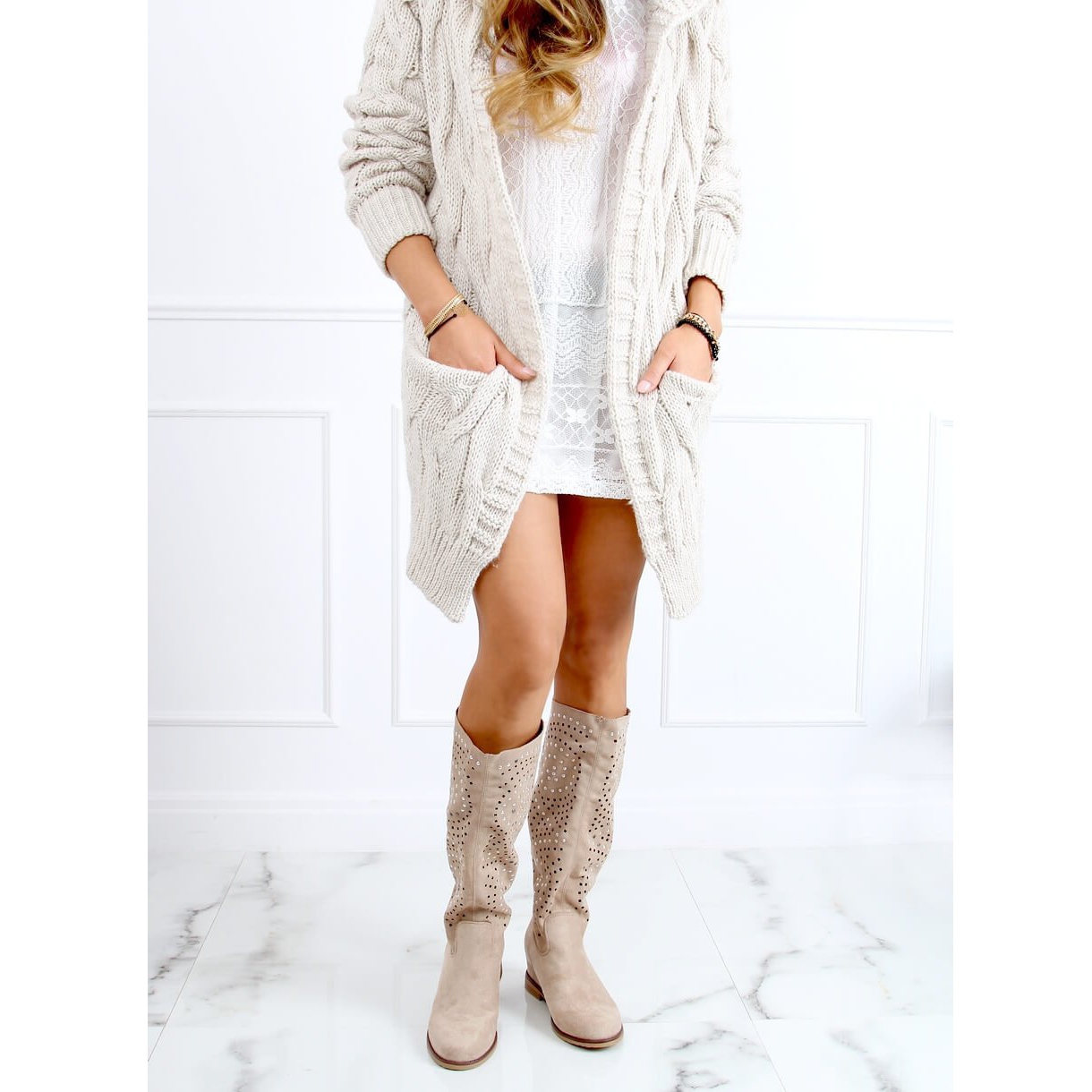 Not only the look, but also the comfort of wearing makes this model unique - a soft insole and synthetic sole provide comfort even during long walks. The upper reaching to the knee adds chic, and the slip-on fastening allows for quick putting on.