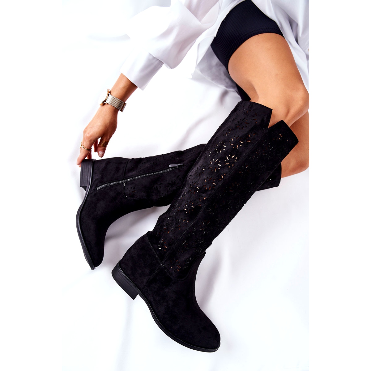The boots have a flat heel with a hidden platform, which subtly emphasizes the silhouette without sacrificing comfort. Fastened with a zipper, they easily adapt to the shape of the foot, ensuring comfortable putting on and taking off. The height of the boot reaching to the knee will look beautiful in combination with both delicate dresses and fashionable trousers, creating unique combinations.