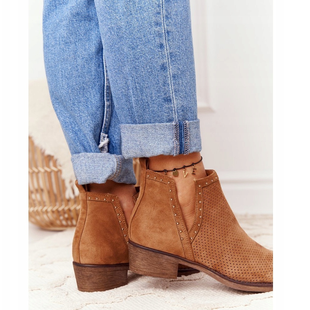 Discover elegance and comfort in the new PS1 collection with openwork ankle boots with cutouts in camel color. These unique women's ankle boots, made of high-quality eco-suede, will be perfect as a complement to many spring styles.