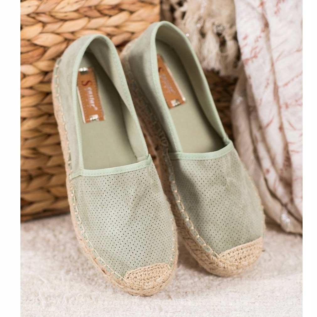 Stylish openwork Seastar espadrilles in a green shade are a great choice for spring and summer. These slip-on shoes are distinguished by a light, openwork upper that provides breathability and comfort even during prolonged use. Decorated with a characteristic, braided string, they bring a unique charm to every styling.