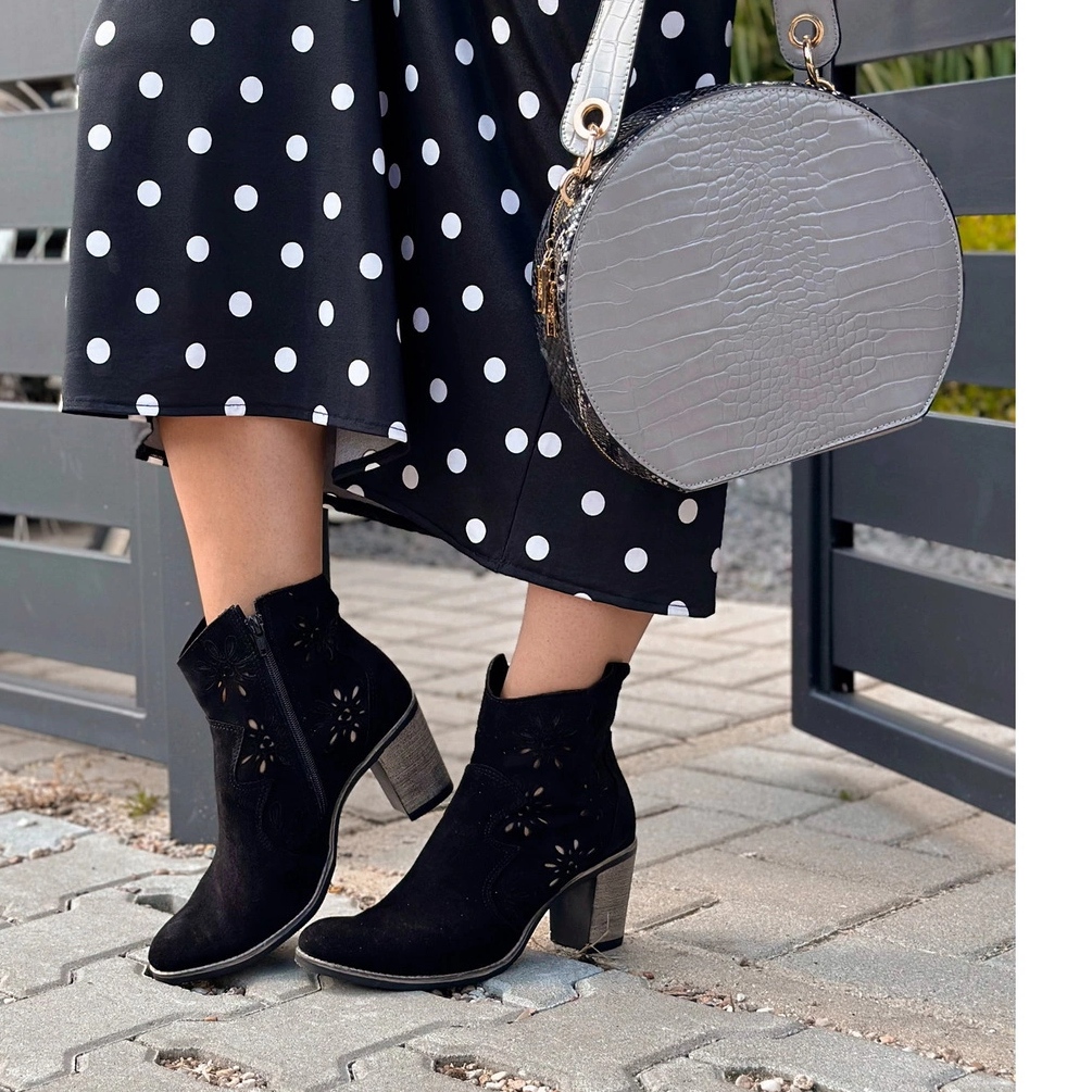 Elegant and practical at the same time - these are Lena women's boots from the Polish manufacturer Olivier. Made inside and outside of natural leather (nubuk), ensure comfort and pleasant to the touch finish. The openwork pattern on the upper adds lightness and allows your feet to breathe, thanks to which the boots are also great without tights. The model reaches for the ankle (about 15 cm), and the practical lock along the entire length makes it easier to put on.