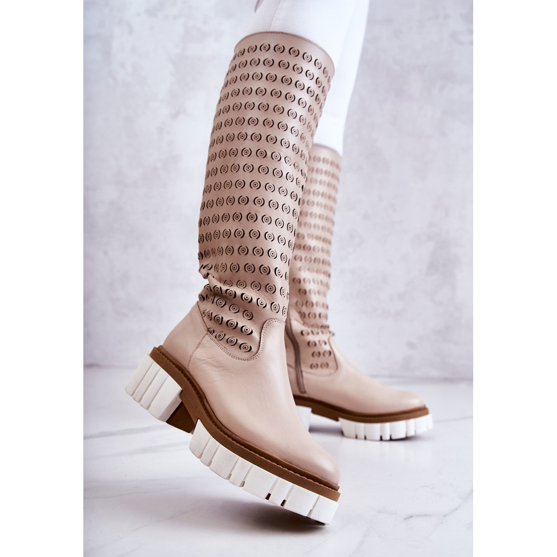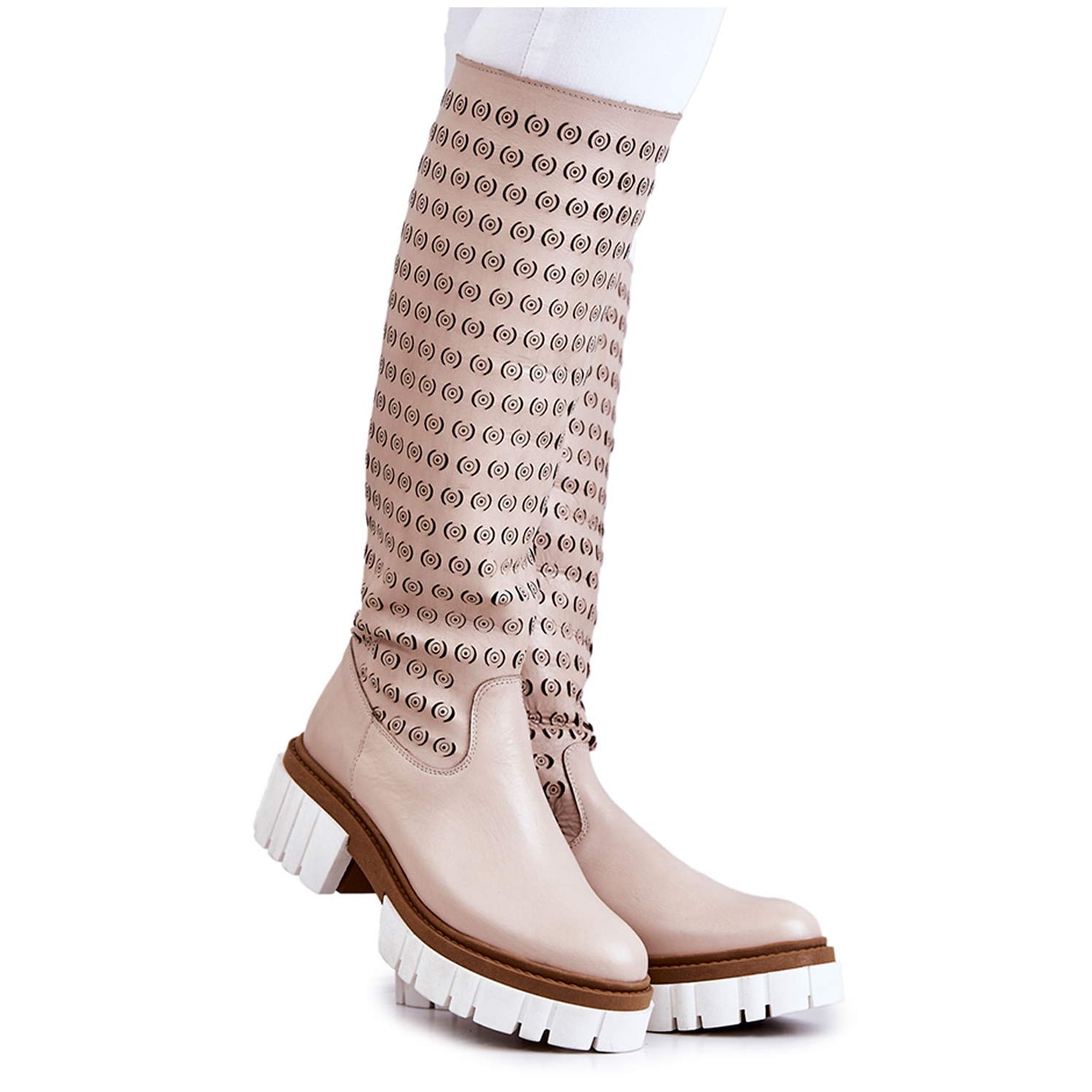Inna marka Openwork Leather Boots With Beige Lativia Zipper