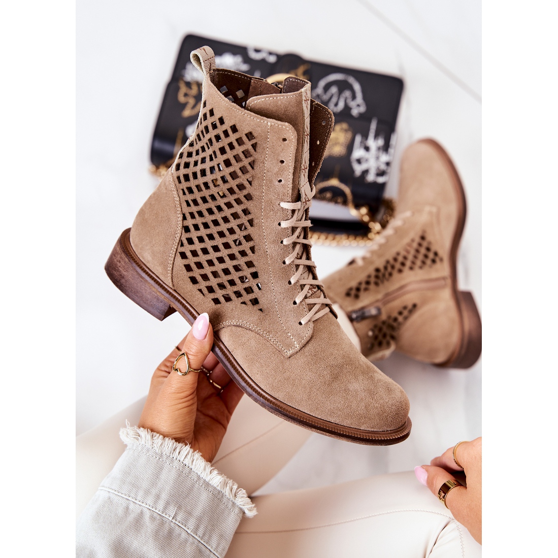 We present openwork leather lace-up ankle boots Nicole in a beautiful light brown color. These unique ankle boots from the Polish brand Nicole are a combination of the latest trends with excellent quality of finish. Made entirely of natural leather, they guarantee durability and comfort of wearing.