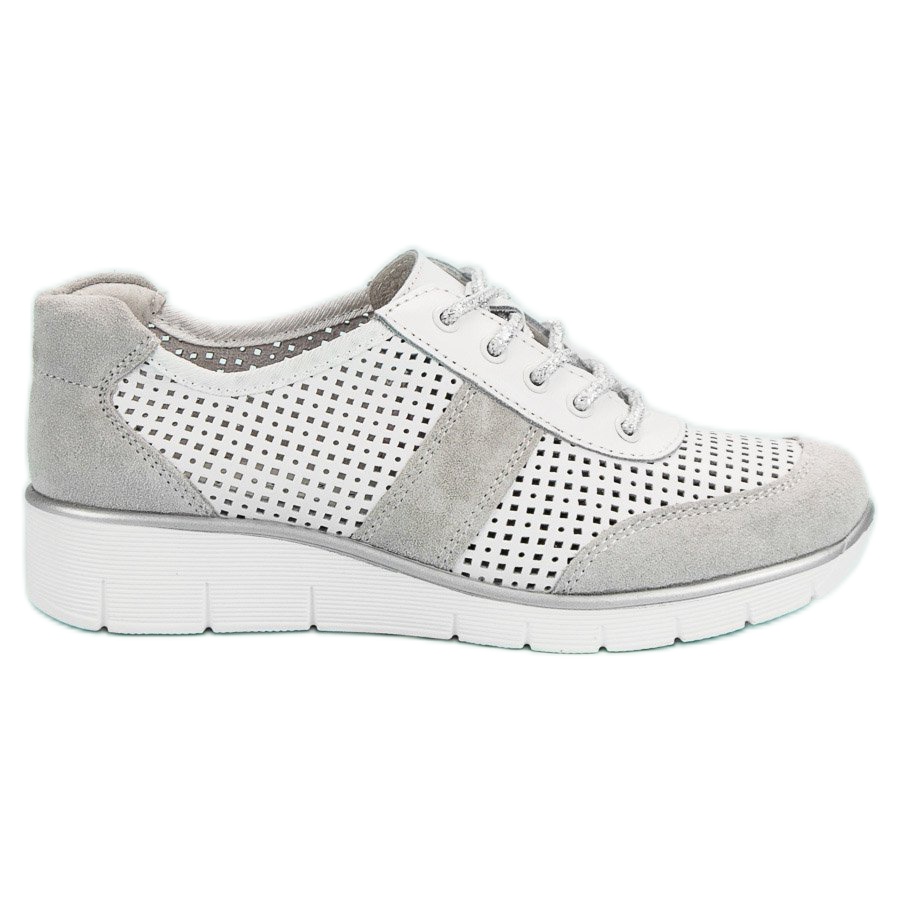 Here are Filippo Openwork Leather Half-Boots in white, which are a great choice for every woman who wants to combine comfort with elegance. These unique shoes are distinguished by openwork inserts that give them subtlety, but at the same time attract the eye with their expressiveness. Classic white combined with gray is a combination that works perfectly in every styling.