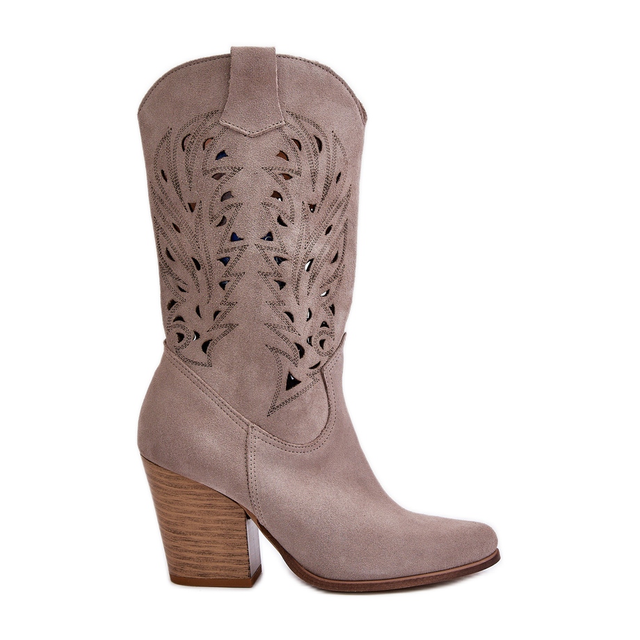 Lewski Openwork Mid-Calf Boots With Stiletto Heel Suede Lewski 3609 Cappucino beige