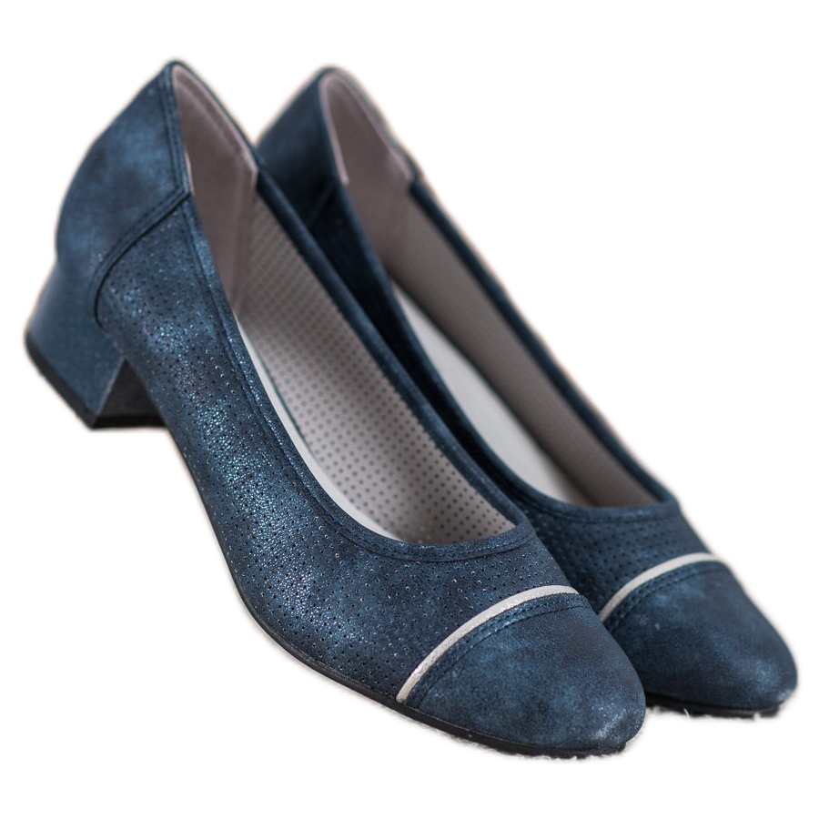 Discover elegance and comfort with the Goodin pumps in dark blue. These incredibly stylish shoes are made of high-quality ecological suede, which makes them both environmentally friendly and very comfortable. The openwork upper effectively wicks away excess sweat, and the soft, closed heel guarantees a perfect fit to the foot.
