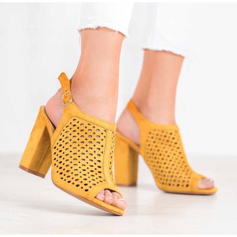 Discover the extraordinary charm of openwork sandals with a block heel from the Weide brand, in a unique mustard shade. These elegant shoes not only attract attention, but also perfectly fit into the latest fashion trends. Ideal for various occasions, they will work well both at evening parties and in everyday stylings.