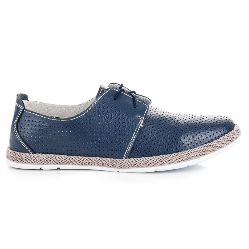 Discover exceptional elegance and comfort with VINCEZA lace-up openwork half-boots in deep blue. These stylish shoes, made of high-quality natural leather with a matte finish, attract attention with their fashionable openwork pattern. Perfect for everyday, they will add a modern character to any casual styling.