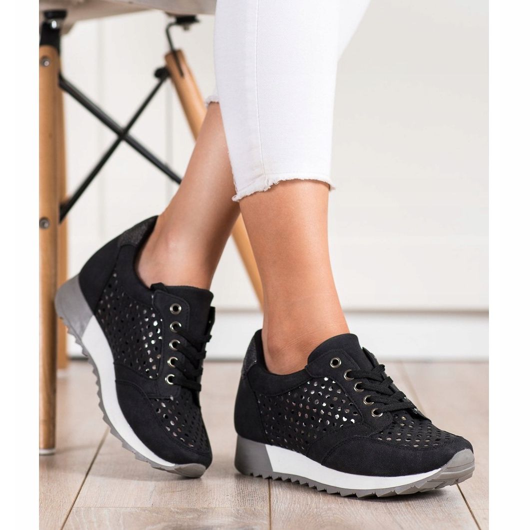 Kylie Openwork Platform Shoes in black are unique sports shoes that combine fashionable design and comfort. Made of high-quality ecological leather, the shoes impress with an openwork pattern that adds lightness and makes them ideal for warm days.