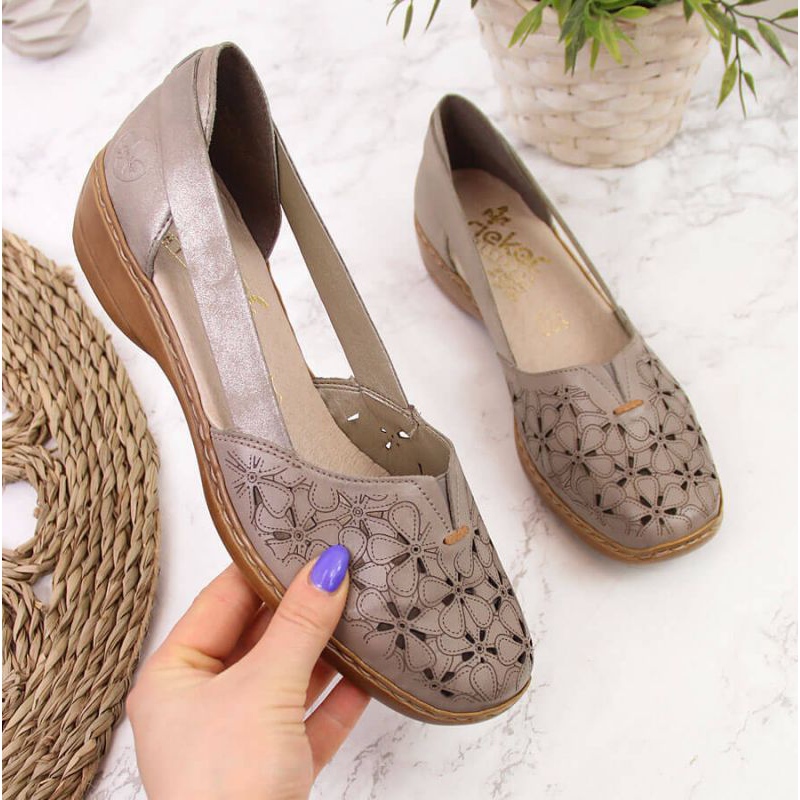 A light, comfortable proposition from the well -known Rieker brand - openwork women's shoes 41356 in elegant pearl beige. Perfect for warm days: airy, flexible and designed for maximum comfort of the feet.