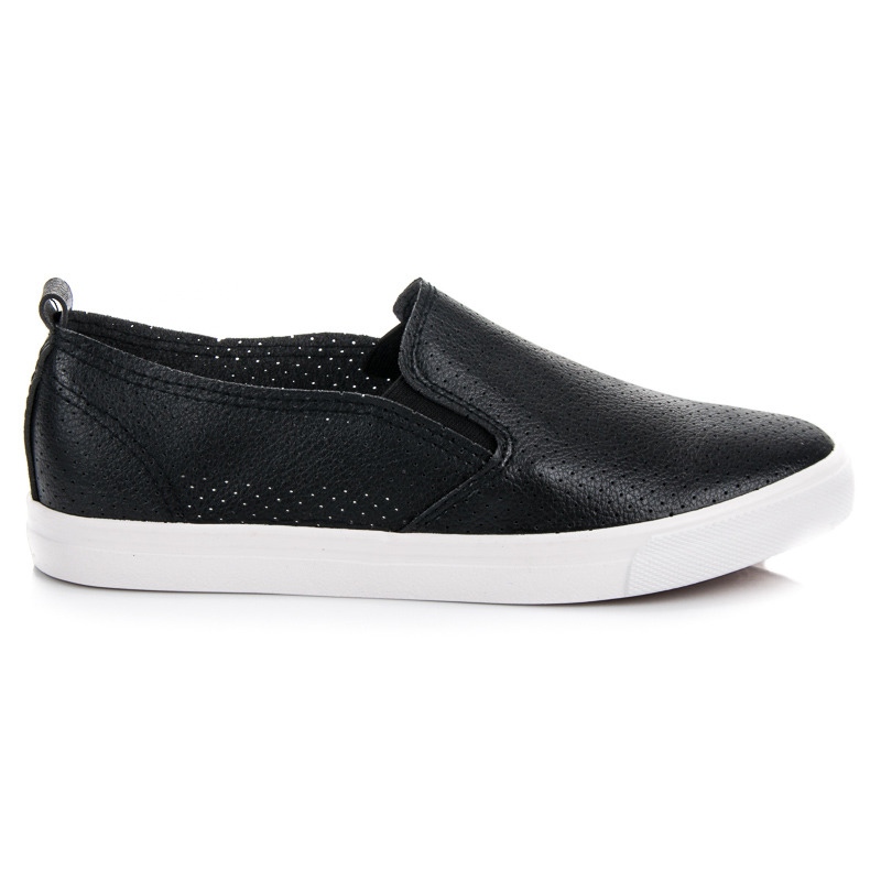 We present openwork slip-on sneakers in an elegant black color from the Sport brand, which are a perfect combination of comfort and style. These low women's shoes are characterized by a practical design, thanks to which putting them on is extremely easy and quick.