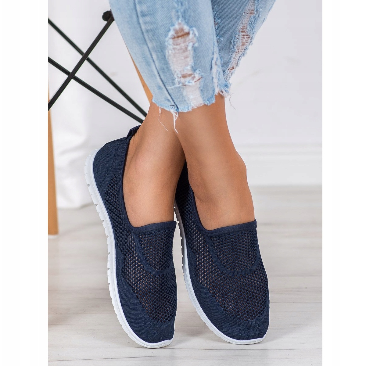 Discover an unconventional style with the Bona openwork slip-ons in blue! These women's slip-ons are the perfect combination of comfort and modern design. Thanks to the high-quality fabric from which they are made, they provide excellent ventilation and comfort of wearing. Their navy blue color with a white, synthetic platform with a height of 2 cm makes them fit perfectly into trends for spring and summer.