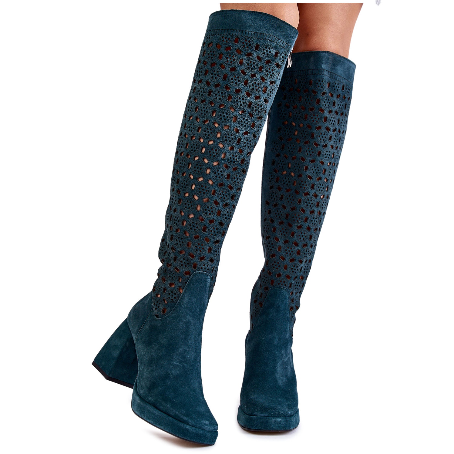 Details: PA2 Openwork Suede Boots On High Heels Green Castres multicolored