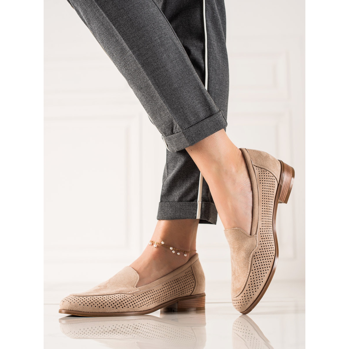 Discover elegance and comfort with the Vinceza openwork half-boots, which will delight every woman with their versatility and style. These unique moccasins, made of imitation suede in an elegant beige color, will be a great choice for both everyday and formal occasions.