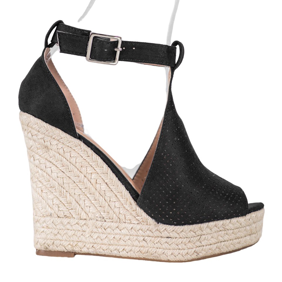 Details: SHELOVET Openwork wedge sandals black