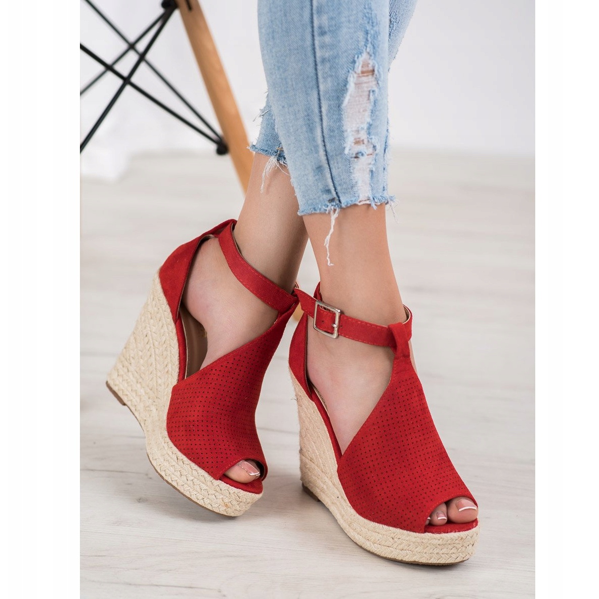 SHELOVET Openwork Wedge Sandals red is a proposal that will certainly attract attention and add a bit of character to any styling. Made in an attractive shade of blood red, these elegant wedge sandals combine an extraordinary design with comfort of wearing.