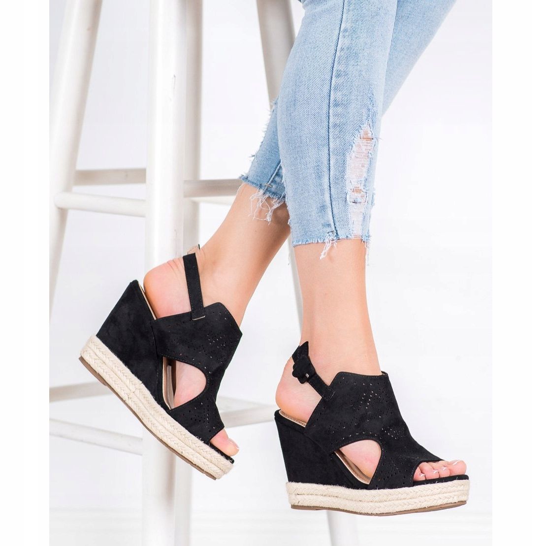 SHELOVET Openwork Wedges in black are the perfect choice for women who want to combine style with comfort in summer stylings. This footwear impresses not only with its elegant, classic design, but also with its openwork pattern, which ensures proper ventilation of the feet, even on the hottest days.