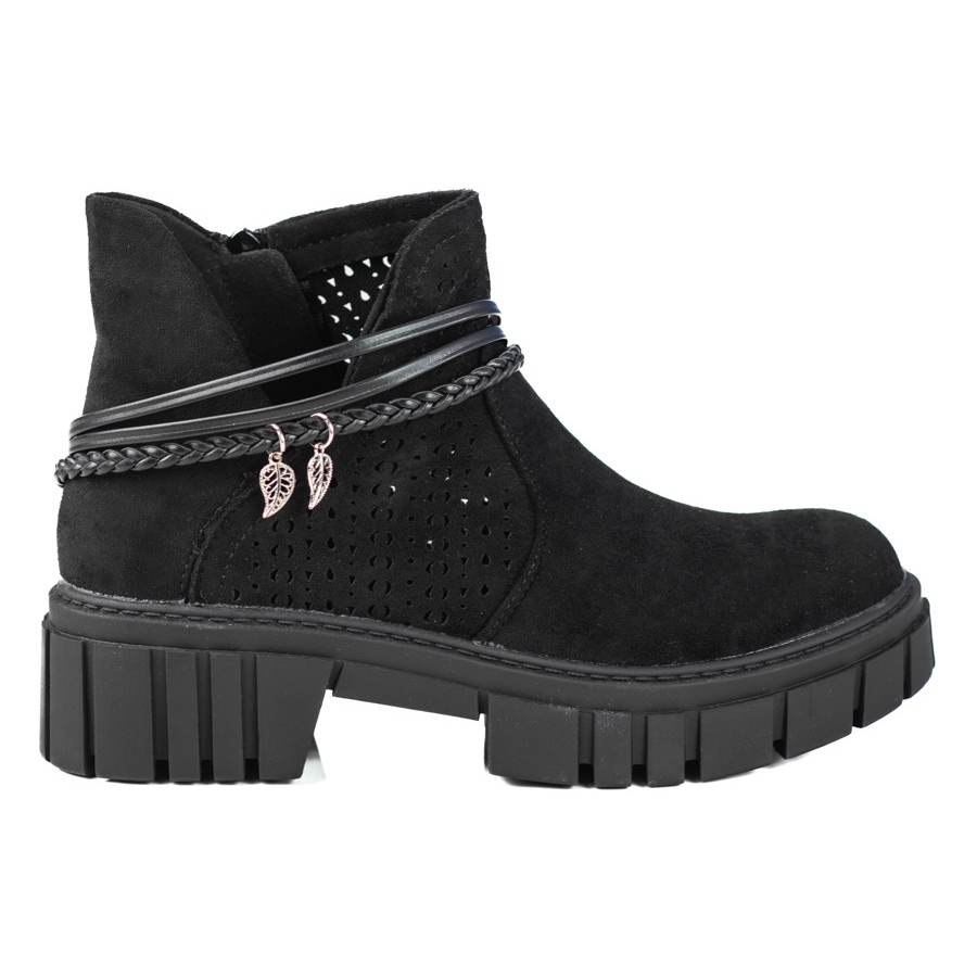 Thanks to their universal colors, Shelovet black ankle boots will match many styles - from jeans, through skirts, to dresses, adding character to each of them. Their openwork structure introduces a fashionable accent, distinguishing you in every situation.