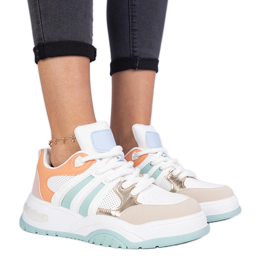 One of the most effective accents is the green sole, which contrasts with a juicy orange color, creating a fashionable and modern whole. Thanks to the 5 cm high platform, sneakers optically extend the figure, while guaranteeing incredible comfort at every step.