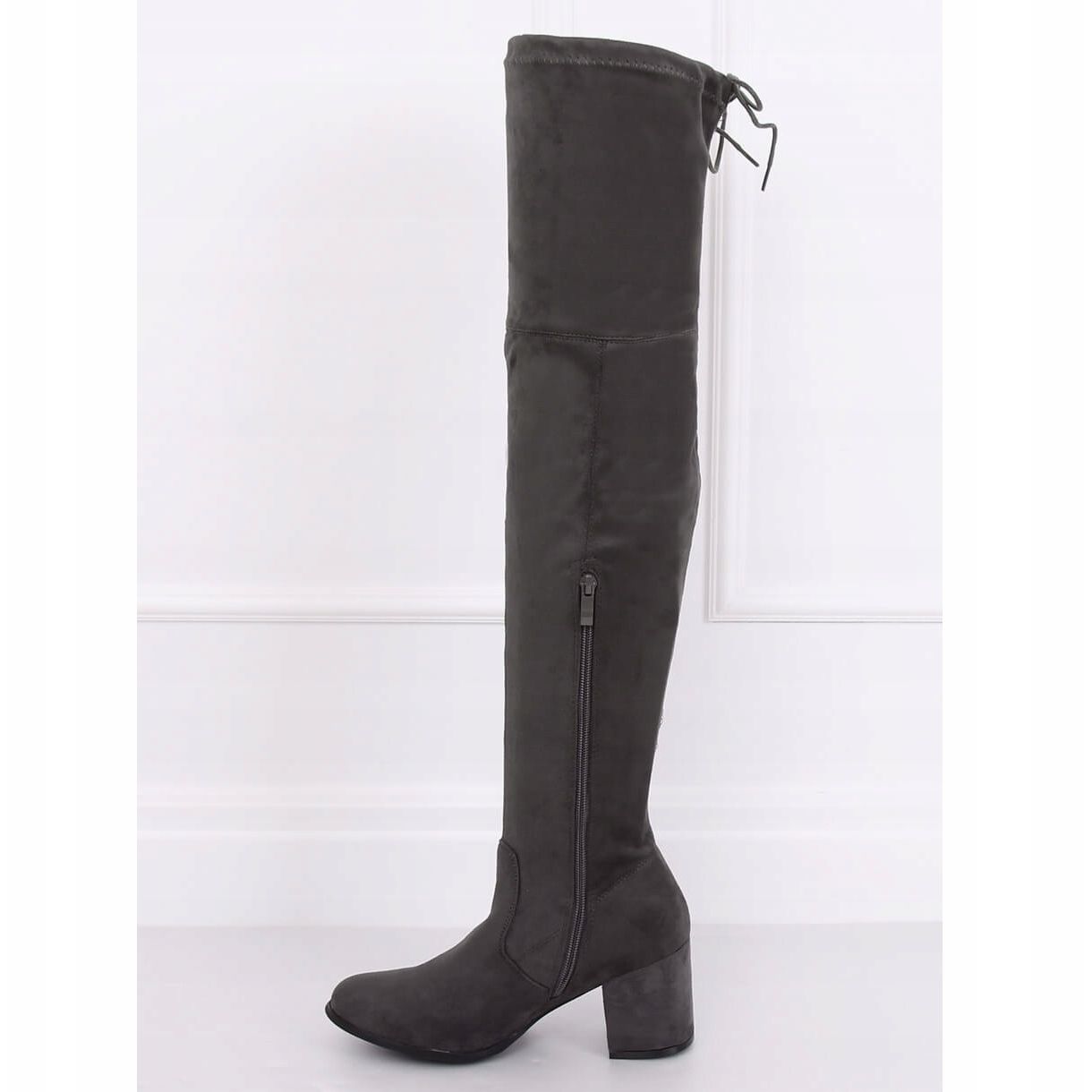 Made of high-quality ecological suede, they guarantee comfort of wearing all day long. Thanks to the practical string at the top of the upper, the shoes hold the foot perfectly, which eliminates the risk of slipping off. Easy-to-put on zipper placed on the side makes these over the knee boots extremely functional.
